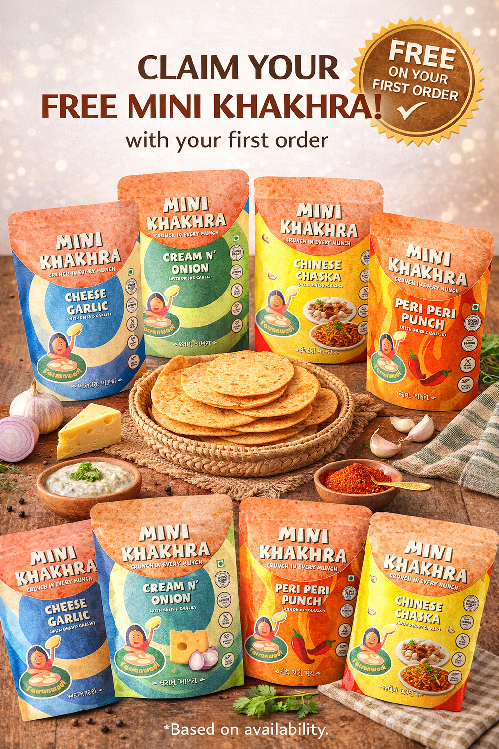 From crispy khakhras to wholesome everyday snacks, Farsanwadi blends traditional taste with modern nutrition — handmade, vegetarian, and irresistibly crunchy.