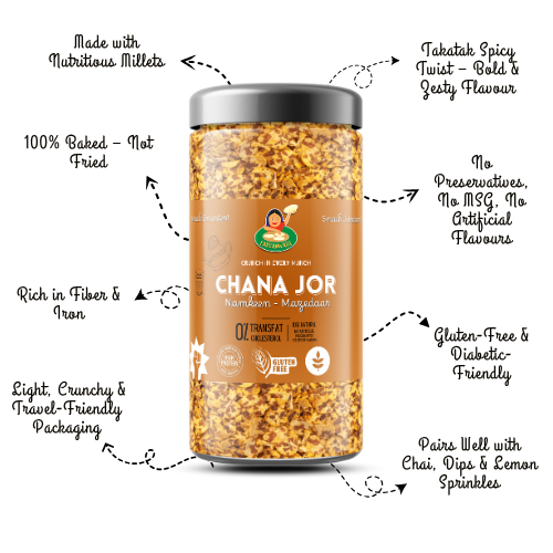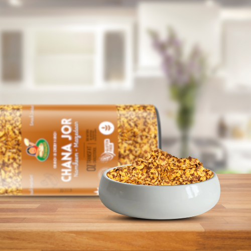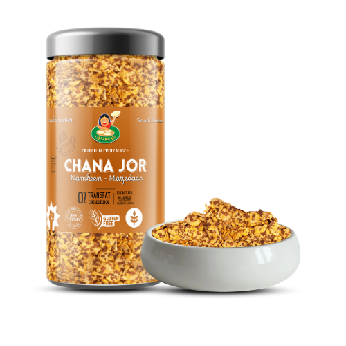Introducing Desi Chana Jor – a protein-packed, crispy snack made from flattened Gram beans and tossed in traditional Indian spices. Perfect for those who love mildly spiced snacks. Light yet flavourful, this wholesome namkeen offers the perfect balance of crunch and taste for your anytime cravings. Great with chai or just as-is!