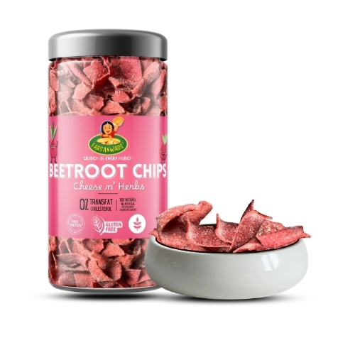 A delicious fusion of natural beetroot and creamy cheese & herbs seasoning. These chips are crafted using a blend of flours to offer a crunchy texture with better nutritional value. Perfect for those who want a balanced snack that combines indulgent taste with a healthier profile.