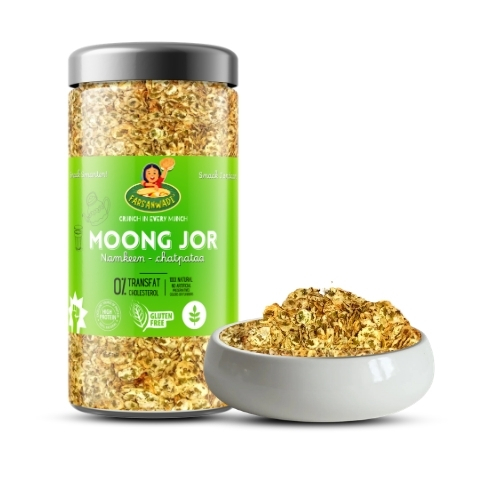 Made from roasted green moong, this crunchy snack is packed with plant-based protein and fiber. Seasoned with tangy and chatpata spices, it delivers a burst of flavor in every bite. A light and wholesome alternative to fried namkeens, perfect for guilt-free snacking anytime.