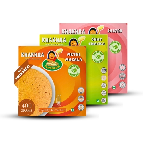 A perfect blend of classic Indian flavors featuring Methi Masala, Chat Chaska, and Salted khakhras. Made from 100% whole wheat and roasted to perfection, this combo delivers a light, crispy, and fiber-rich snacking experience. With twin packs for each flavor, it offers great value along with authentic taste.