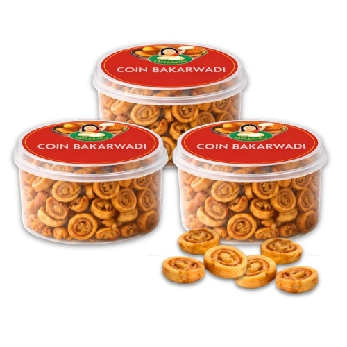 A pure and traditional offering, this pack includes three portions of Jain Coin Bakarwadi made without onion and garlic. Prepared using quality flours and aromatic spices, it delivers the perfect balance of sweet, spicy, and crunchy flavors. Ideal for those who enjoy authentic taste with a clean and mindful recipe.