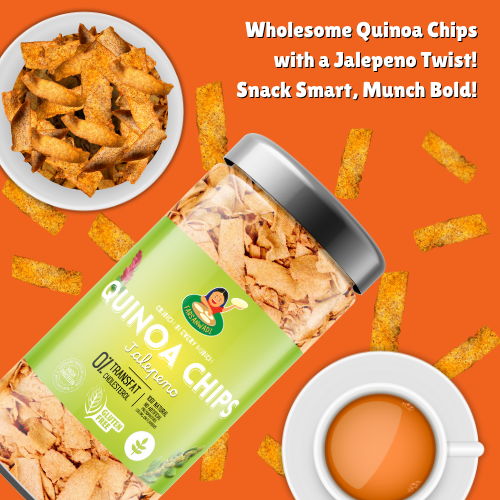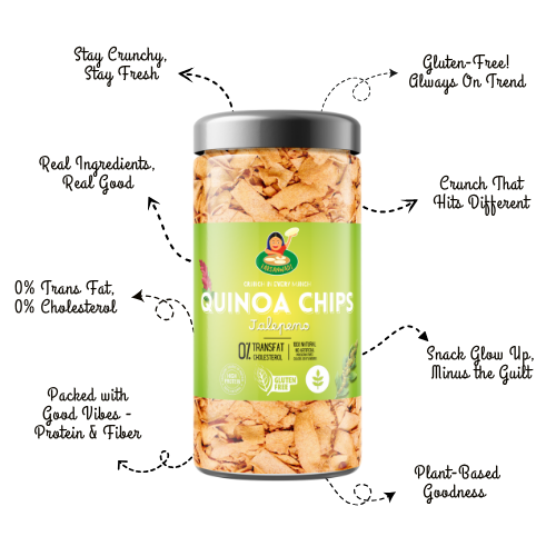 Spice up your snack time with our Quinoa Chips – Jalapeño! Made from wholesome quinoa and seasoned with the zesty heat of jalapeño, these crispy, oven-roasted chips are a perfect balance of nutrition and flavor. Ideal for guilt-free munching with a bold, fiery twist.
