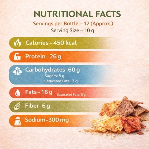 Powered by ragi (finger millet), these chips are rich in fiber and nutrients. The chatpata seasoning adds a burst of tangy Indian flavors, making it a perfect everyday snack. Enjoy a wholesome, crunchy bite that supports a better snacking lifestyle.