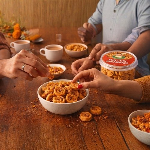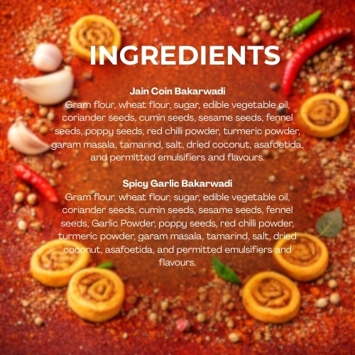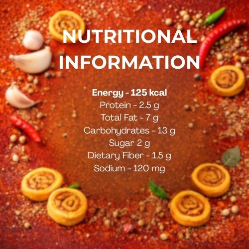 A flavorful twist on the classic bakarwadi, this variant is infused with the bold taste of garlic and spices. Made using a blend of gram flour and wheat flour, it offers a crunchy texture with a rich, spicy filling. Perfect for those who enjoy strong flavors, this snack delivers a satisfying crunch while being a better alternative to heavily fried namkeens.